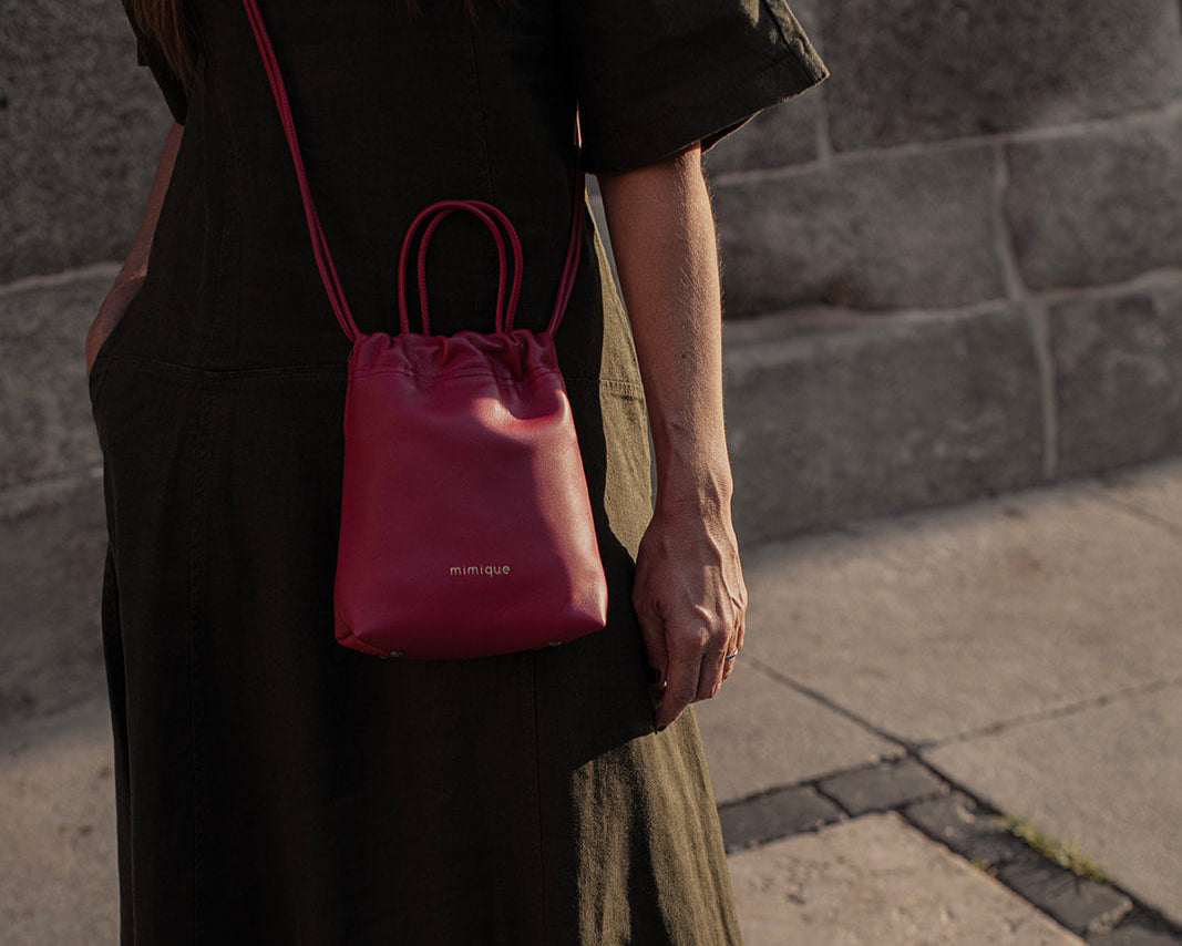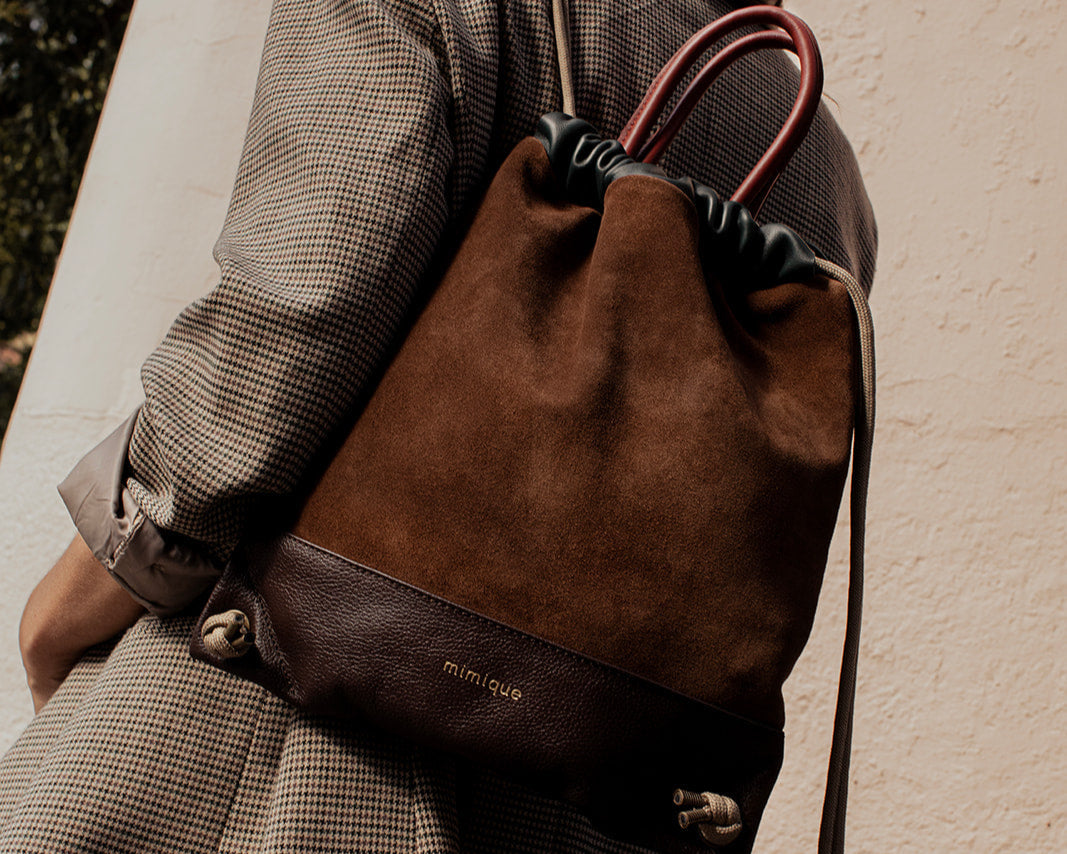 - Guarda el bolso en un lugar seco y ventilado, utilizando su funda de algodón Mimique original para protegerlo de la luz directa y la humedad y rellénalo con papel de seda para que no pierda su forma.